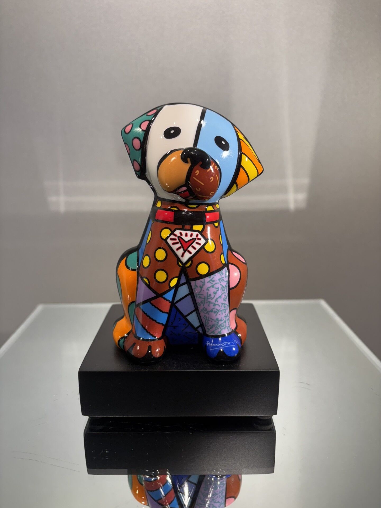 CHIEN de Roméro BRITTO reprenant les motifs propres à BRITTO artiste brésilien de renommée internationale