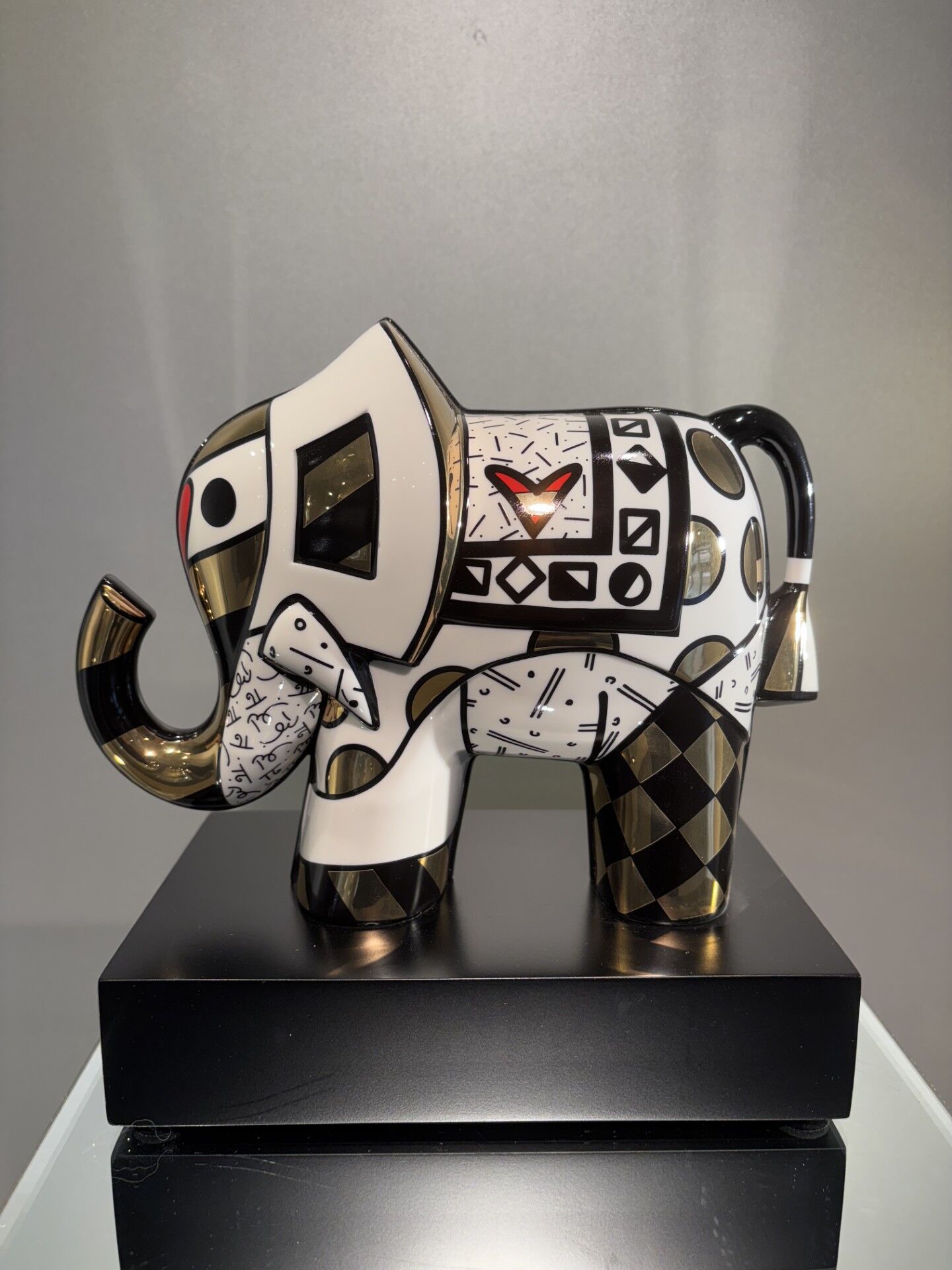 ÉLÉPHANT N/B de Roméro BRITTO reprenant les motifs propres à BRITTO artiste brésilien de renommée internationale
